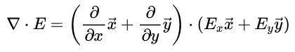 这就是电场E的散度的最终表达式,它的意思很明显:我们求电场E的散度就是把矢量函数E分解成x和y方向上的两个函数,然后分别对它们求偏导,最后再把结果加起来就行了。