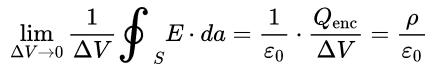 所以,高斯电场定律的微分形式就可以表示成这样: