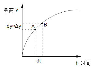 再回到人的身高随年龄变化的这个例子里来。人在各个年龄t都会对应一个身高y,这每个(t,y)就对应了图上的一个点,把这些点全都连起来大致就能得到这样一个图: