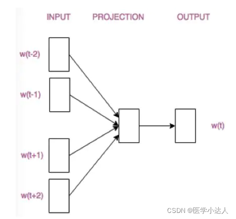 1 )输入层:上下文单词的onehot. {假设单词向量空间dim为V,上下文单词个数为C}