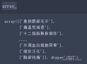 4、先看训练字向量,训练的都是excel表内第三列数据,转化为一维矩阵