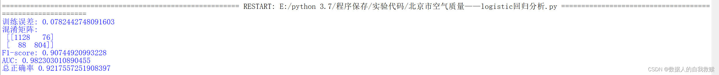 #这里利用空气质量监测数据,建立Logistic回归模型对是否有污染进行分类预测