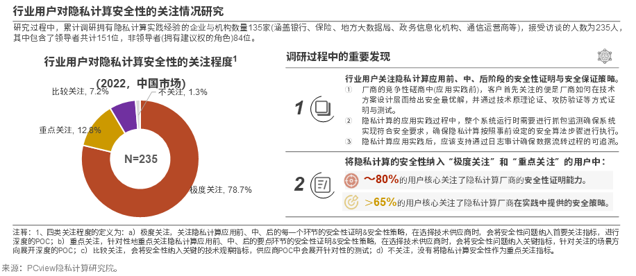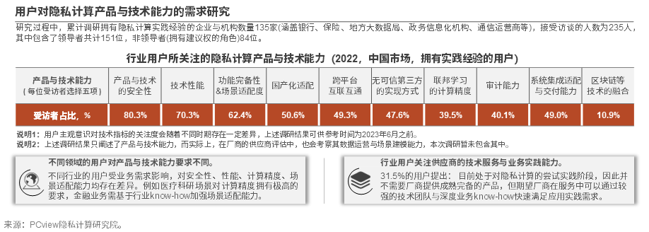 行业用户重点关注厂商如何证明其隐私计算产品的安全性以及如何在技术应用中提供安全策略