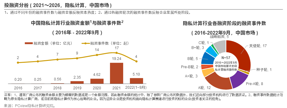 隐私计算厂商在资本的加持下得到了快速发展,2021年处于资本热度峰值,2022年资本降温