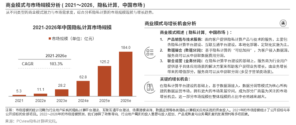 中国隐私计算行业将迎来快速增长,预计至2026年市场规模将达184亿元,年复合增长率为103.3%