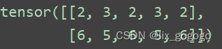 3、这里的index = torch.tensor([1,2,1,2,1], [2,1,2,1,2])表示从p的第一行选取索引为1, 2, 1, 2, 1的元素(即2, 3, 2, 3, 2)组成p1的第一行,而从p的第二行选取索引为2,1,2,1,2的元素(即6, 5, 6, 5, 6)作为p2的第二行。