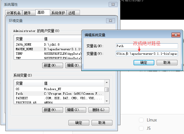 1、将MAVEN_HOME从用户变量调整到系统变量