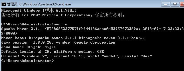 win7操作系统,下载了maven-3.1.1,然后解压到本地,并配置了MAVEN_HOME到环境变量后居然不起作用,抓狂!!!
