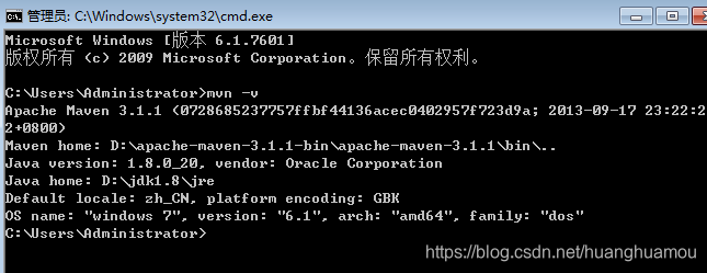2、再试下mvn -v命令,终于可以正常使用了!!Oh Yeah!!开心!!