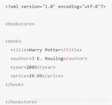 在下面的例子中,bookstore 的后代是 book、title、author、year 以及 price 元素: