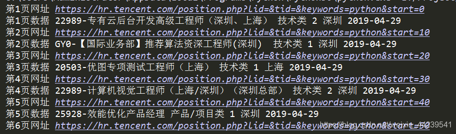# 第三页: 'https://hr.tencent.com/position.php?lid=&tid=&keywords=python&start=20#a'