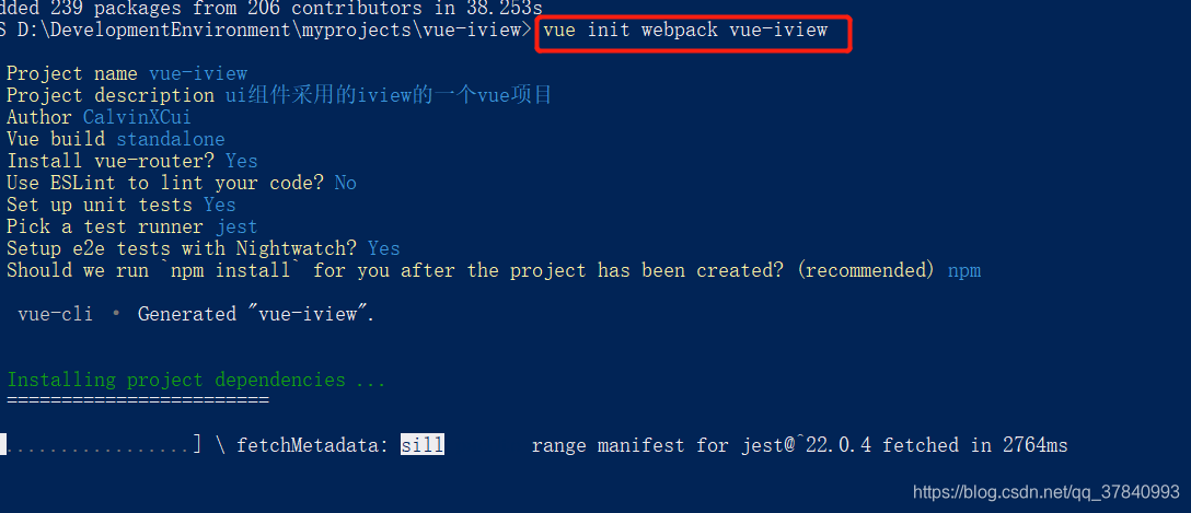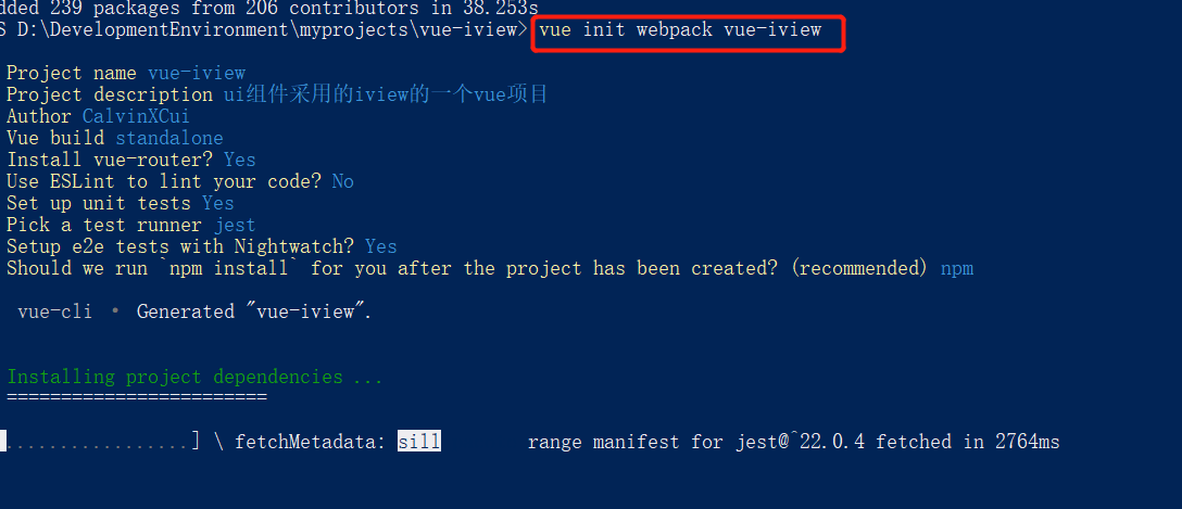 install vue-router?是否安装vue的路由插件,需要就选y,否则就n(以下均遵循此方法)