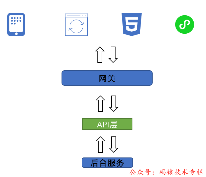 下面我们简单介绍下图中网关、API服务、后台服务的作用。