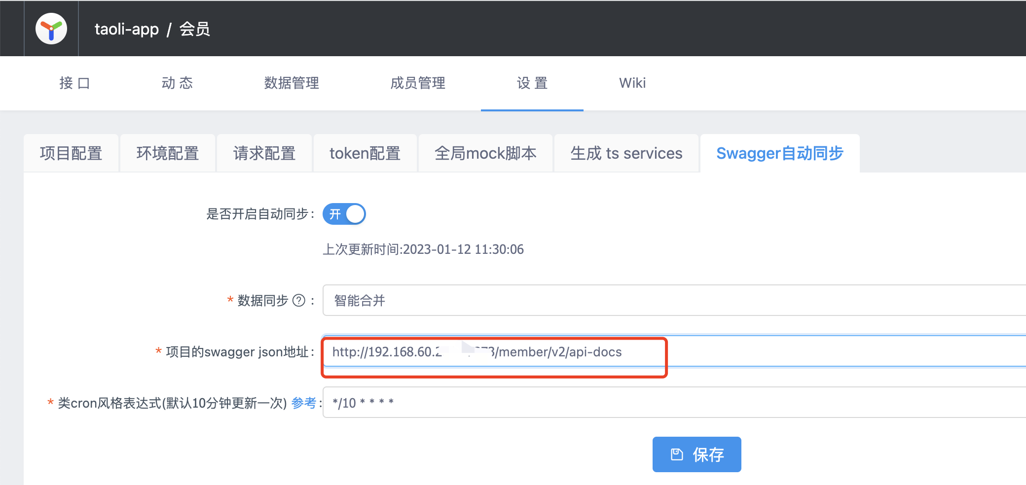 yapi同步接口到apifox一、找到yapi的数据源url【打开yapi设置→还要点击swagger自动同步的tab】二、apifox点击导入版权声明:本文为bluewelkin原创文章,遵循CC 4.0 BY-SA版权协议,转载请附上原文出处链接和本声明。原文链接:https://blog.csdn.net/bluewelkin/article/details/128656561