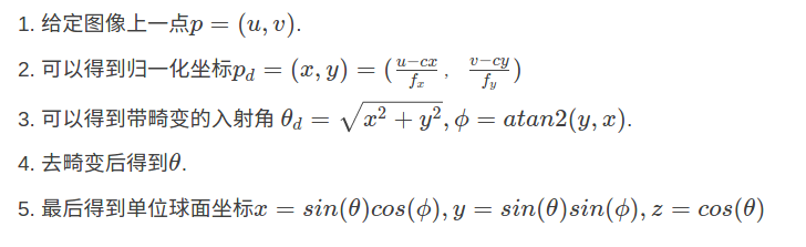 假设相机坐标系下归一化到球面的3D点坐标坐标为Ps=(xs,ys,zs)