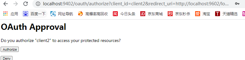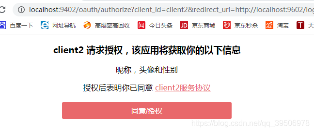 这里测试一般使用http://baidu.com测试,使用http://jd.com测试回调后授权码code没有,注意单点登录登录后授权页面这个链接http://localhost:9402/oauth/authorize?client_id=client1&redirect_uri=http://localhost:9502/user/mylogin&response_type=code&scope=all&state=F0ECjt(FOECjt不是授权码)