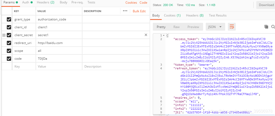 5.3.postman发送POST请求,注意相关参数与授权链接的一直,并且只能访问一次