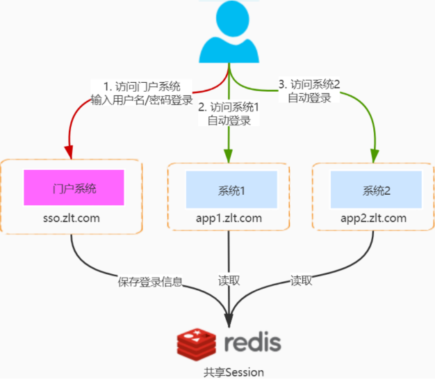 Spring Session等技术让所有系统共享Session - 这样只要门户系统登录之后无论跳转应用1或者应用2,都能通过门户
