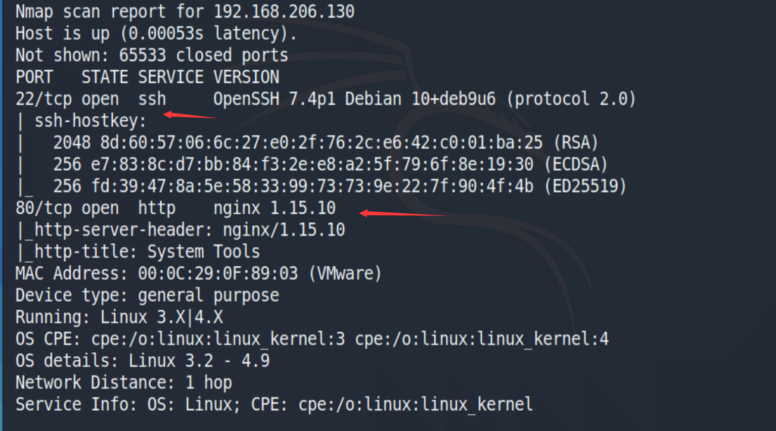 nmap -T4 -A 192.168.206.130 -p 1-65535