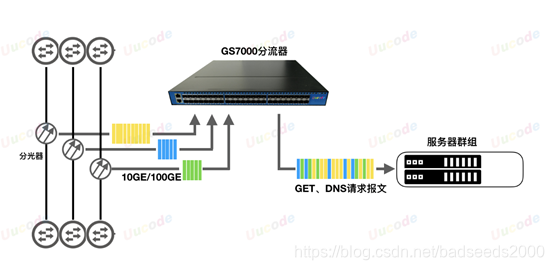 可以将前端采集到的不同速率的原始链路数据接入到网络分流器中,网络分流器提取数据中的HTTP GET请求报文和DNS请求,用于精准用户画像和竞价排名,过滤大量其它与用户行为无关流量,通过此方法对大数据做预处理,可极大的减轻后端数据分析服务器压力,1对100GE的链路过滤后流量通常不超过1Gbps,因此降低总个系统成本。