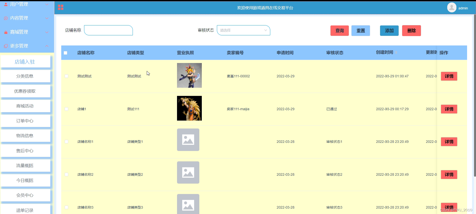 (3)店铺入驻管理:主要包括店铺入住审核等功能。