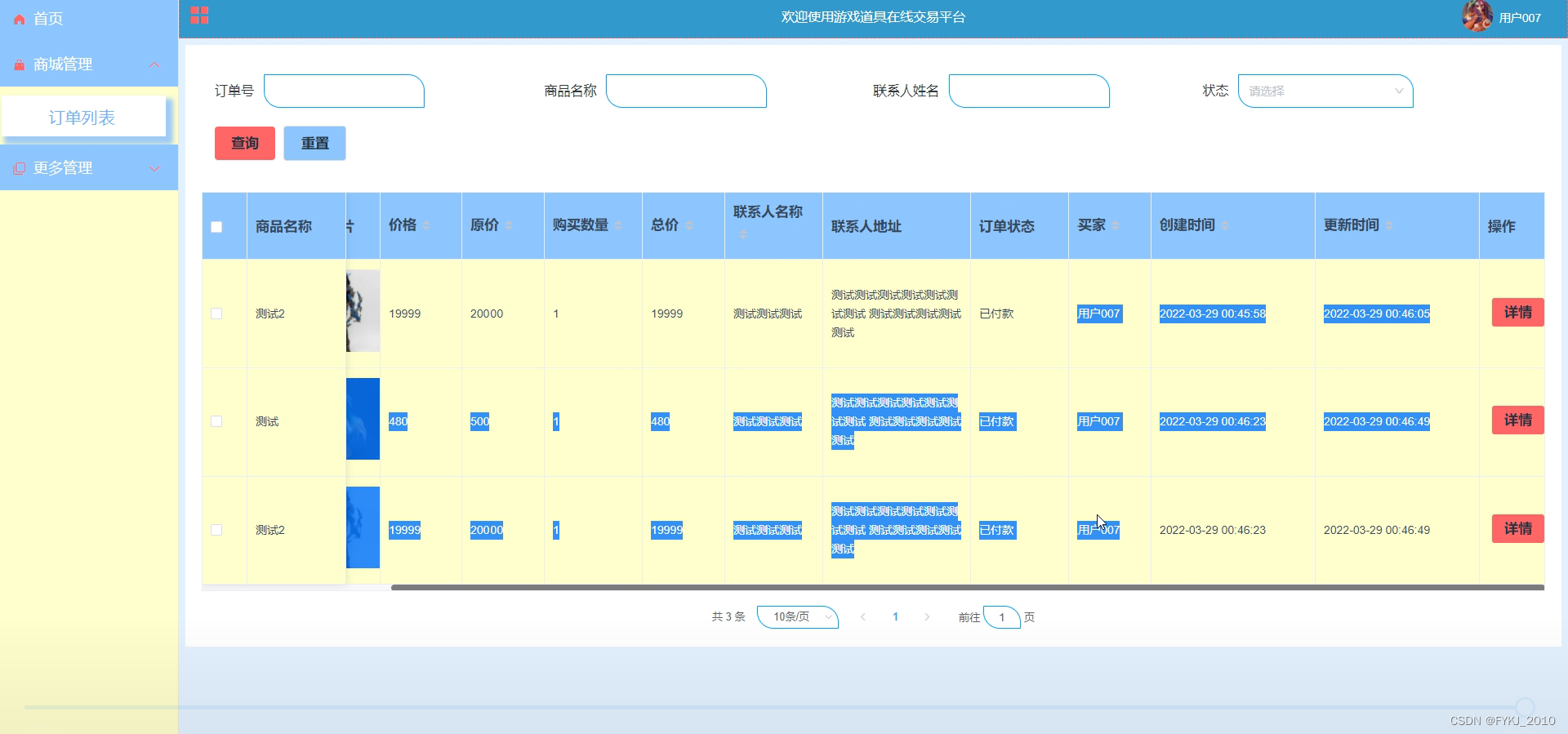 4 | 购买管理 | 1.购买订单清单是否可以生成。 2.验证消费信息是否准确。 | 通过 |