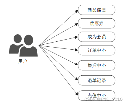 游戏道具在线交易平台的前台中,用户模块和商品模块进行数据交互,实现购买的功能。前台的功能主要包括用户模块、优惠券模块、成为会员模块、购买模块和订单中心模块。