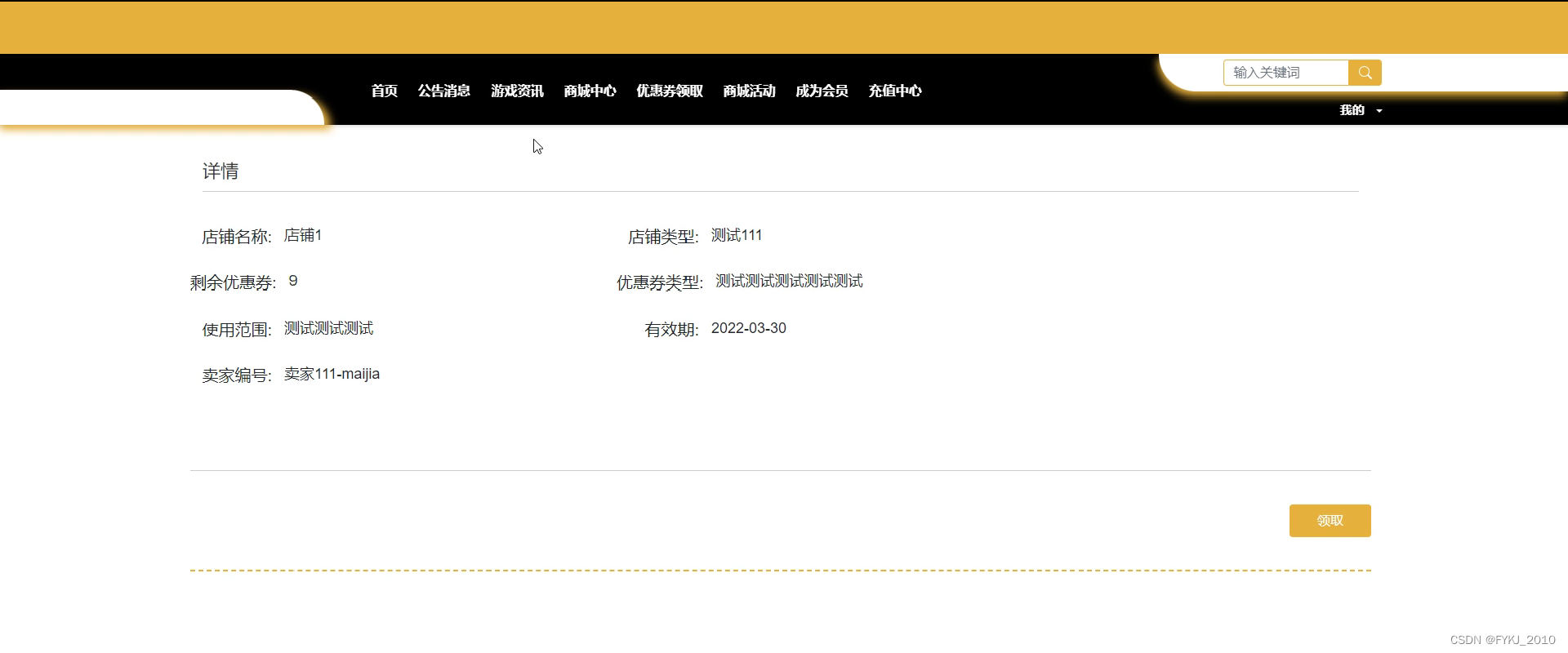 (6)优惠券领取管理:主要包括优惠券信息等功能。