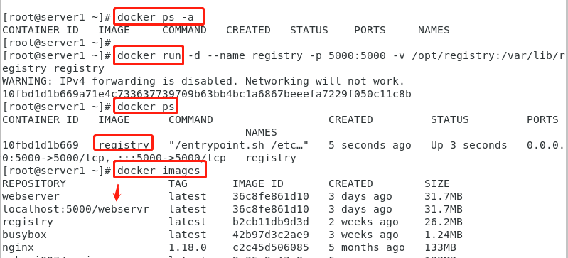 [root@server1 ~]# docker tag webserver:latest localhost:5000/webservr:latest