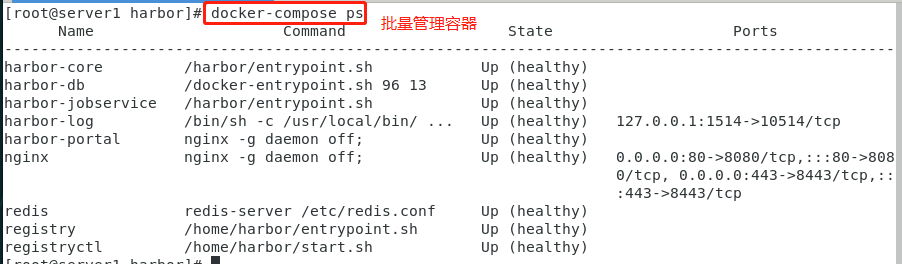[root@server1 harbor]# ln -s /usr/local/bin/docker-compose /usr/bin/docker-compose