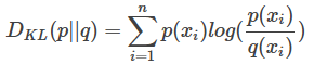 这个反映了一个增量,即q的分布与p的分布接近的程度。即p概率分布下q的熵,与p概率分布下p的熵,相当于H(Q)-H(P) ,两个熵进行相减,就得出了KL散度。KL散度越小,则表明两者越接近。