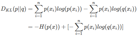 得到前部分是真实分布P的熵,后部分就是交叉熵: