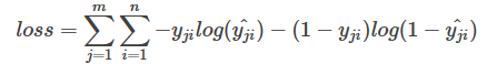 y为label,y^为网络预测的概率。每个size为m,标签数量为n的batch的loss为: