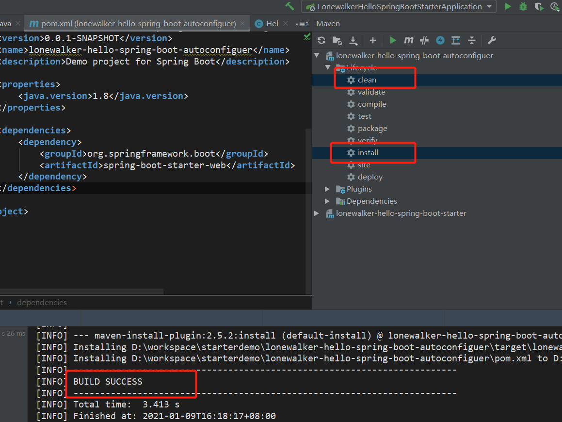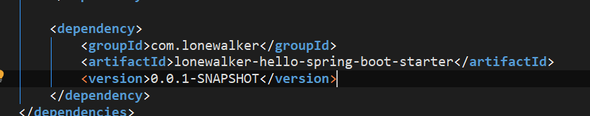首先在启动器模块的pom文件中添加自动配置模块的依赖,这样别的项目需要使用时只需要引入该启动器即可。