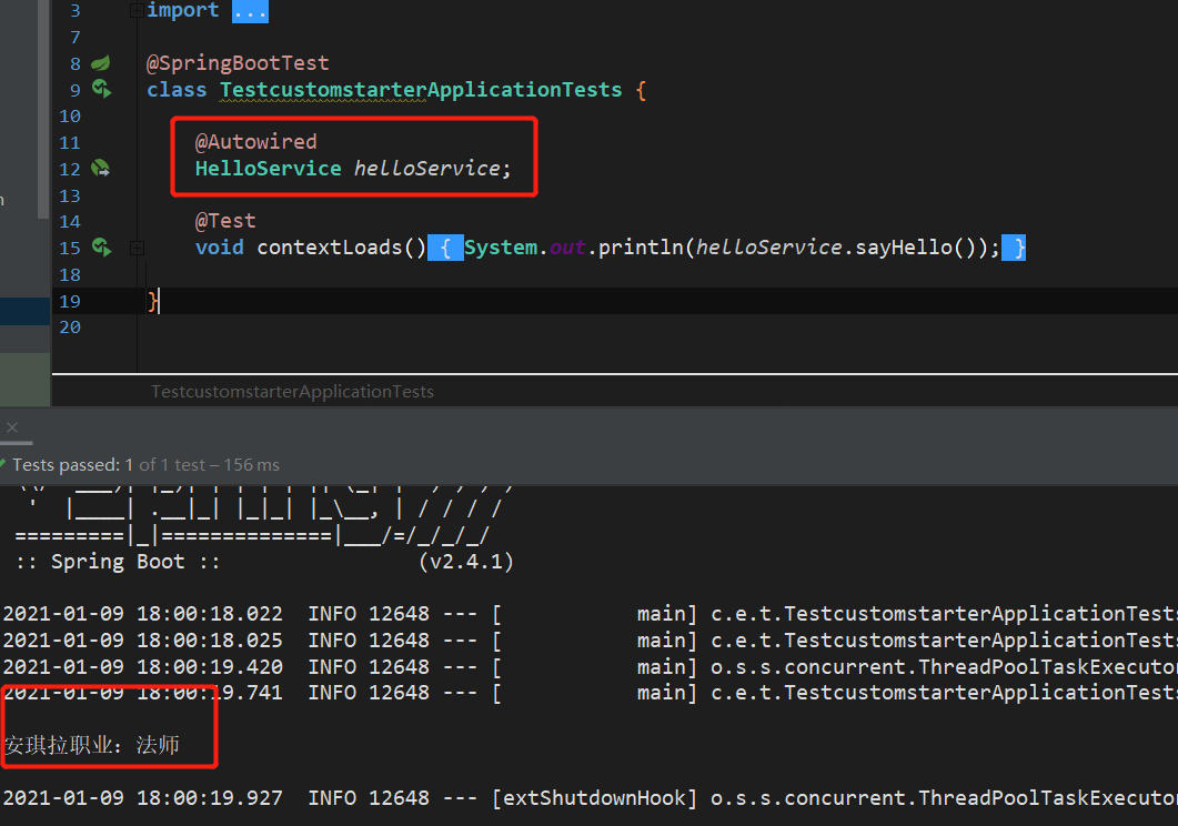 在自动配置模块的pom中只需要留下web场景启动器即可,启动类也可以删掉,然后写个用于后面测试的service