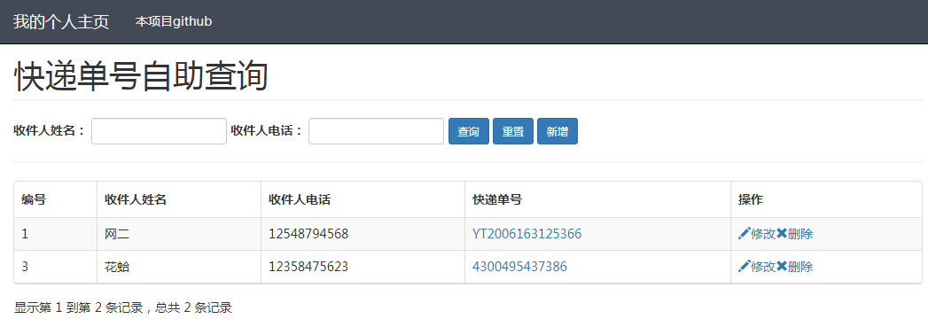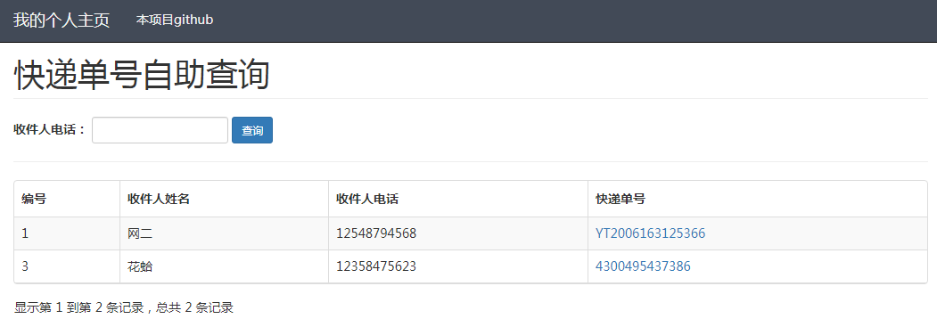 区分用户和管理员页面,保护用户信息隐私,首页必须输入手机号,才可以查看快递单号;