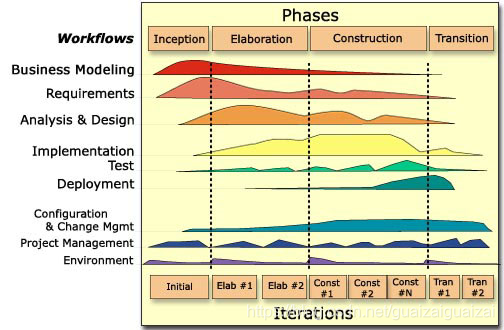 3,RUP的每个阶段包含一到多次迭代,每次迭代包括业务建模,需求,分析设计,实现,测试状语从句:部署。这6个工作流(环境,项目配置,配置与变更管理)