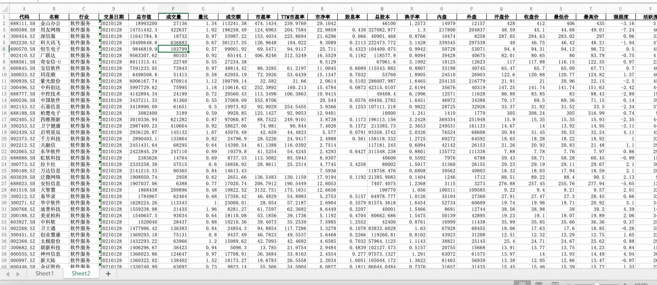 这里以软件服务行业为例,得到的2021-01-28日的结果如图: