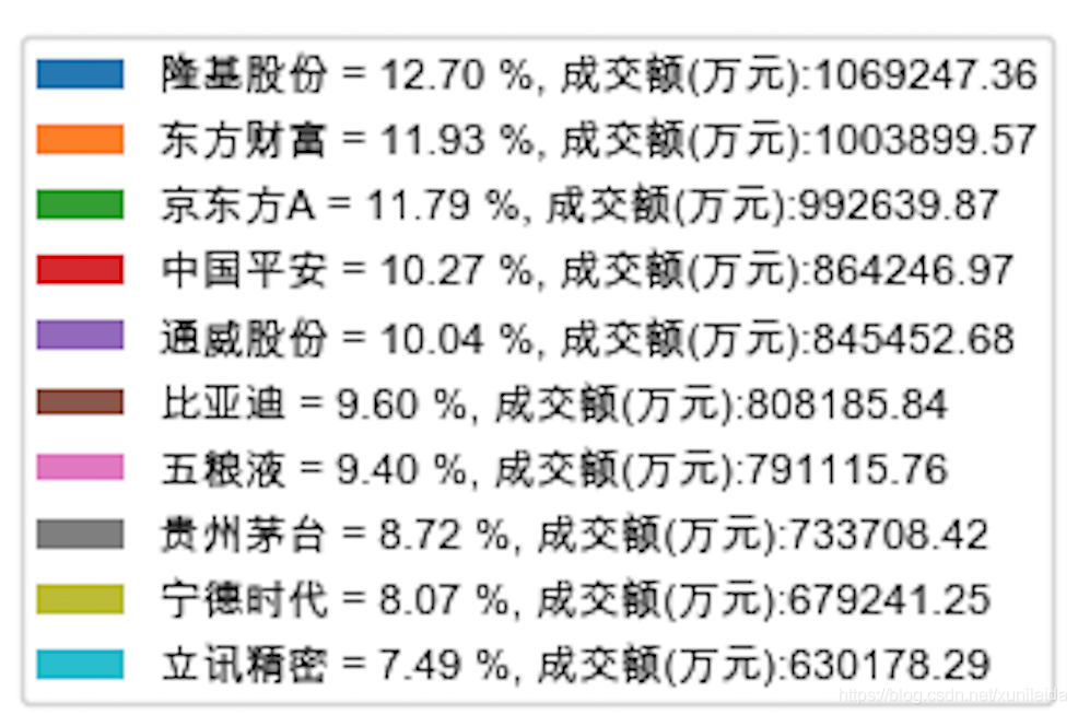 labels = ['{0} = {1:1.2f} %, 成交额(万元):{2}'.format(