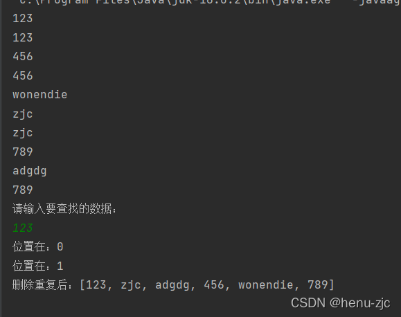 System.out.println("删除重复后:"+list);