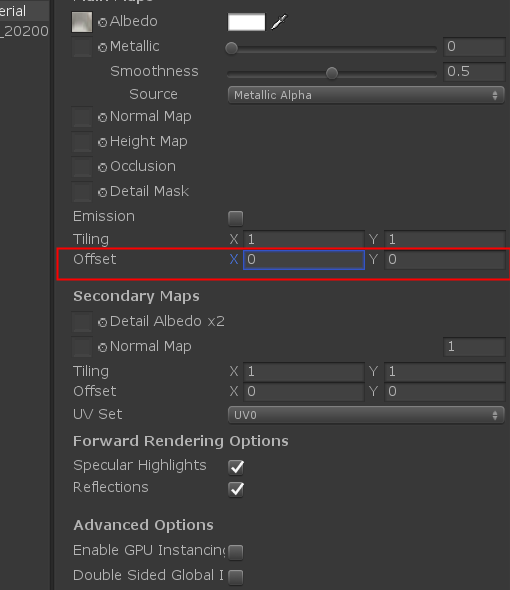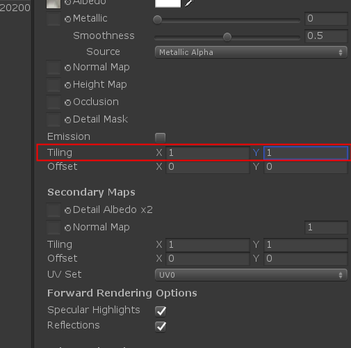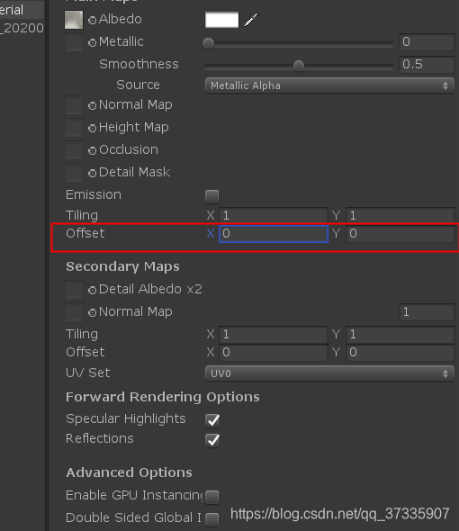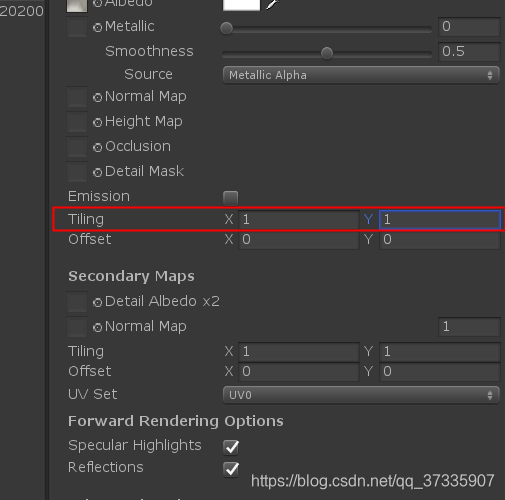 mainTextureScale 这个是设置主纹理的尺度,这个再material面板是设置以下值的,这个二维向量数值越大,单面的纹理越密集