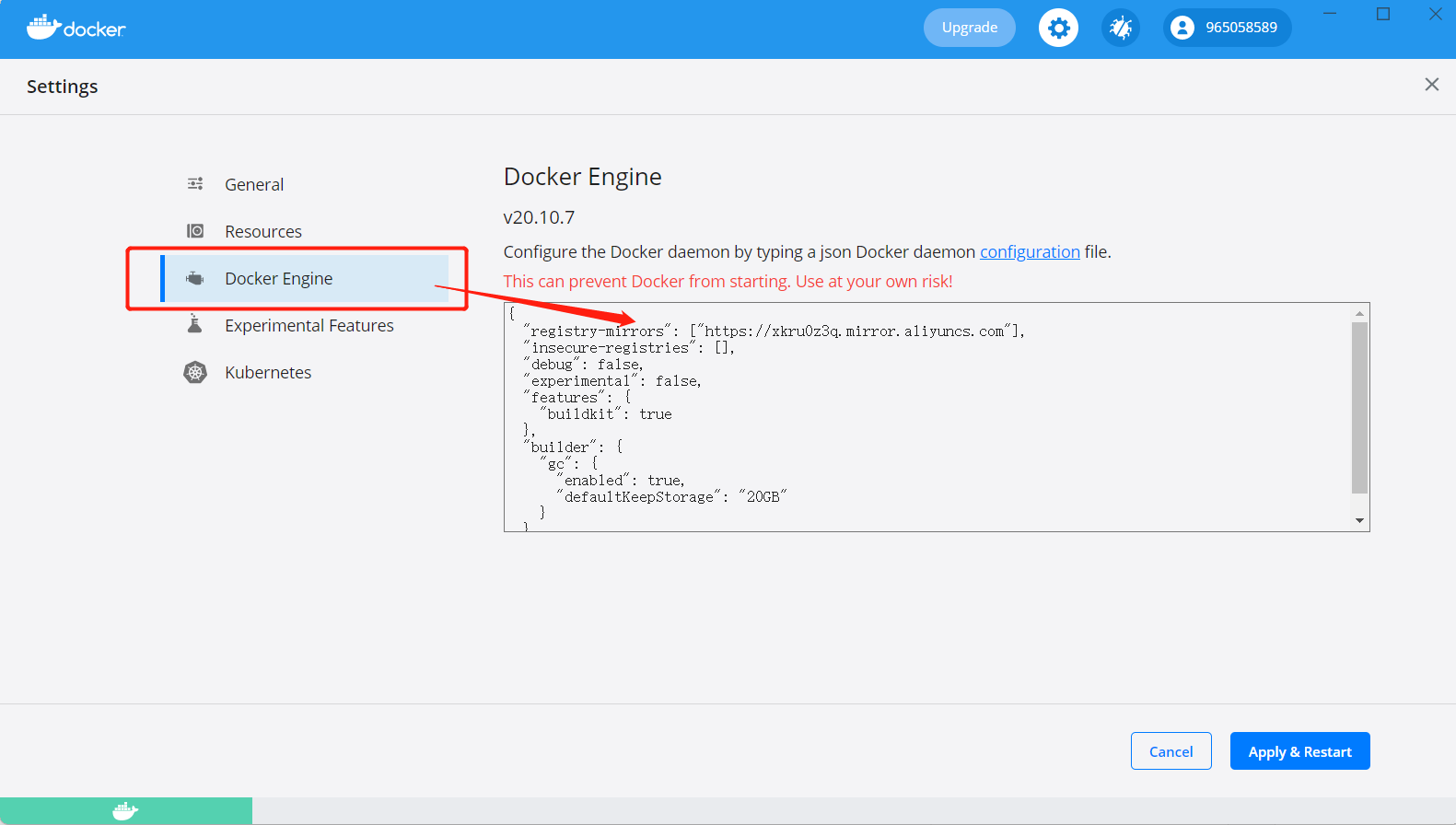 - 对于Windows10系统来说,启动docker之后,右键点击桌面右下角中的docker图标,选择Setting