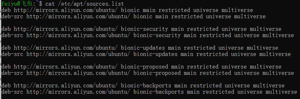 deb http://mirrors.aliyun.com/ubuntu/ bionic-updates main restricted universe multiverse