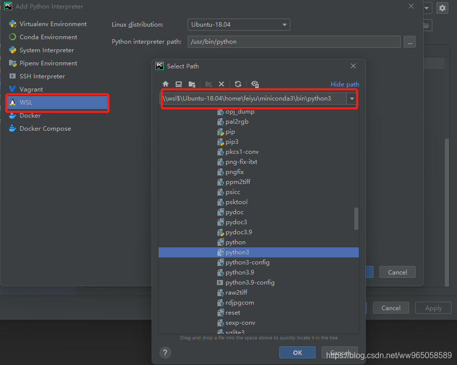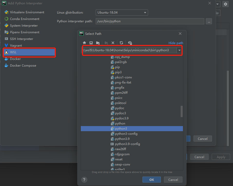PS:由于最后选择了miniconda安装pytorch所以要找到miniconda3 下的python3
