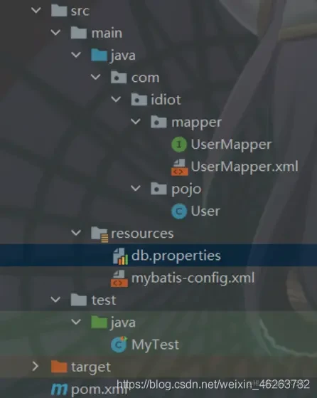 最后进行测试,编写测试类 MyTest.java ,这里没有像之前那样特意的去编写工具类了,然是直接在测试类中进行 SqlSession 的一系列操作,