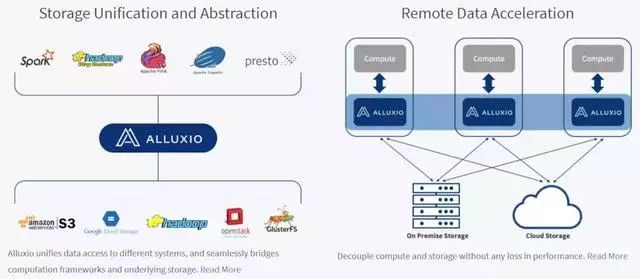 Alluxio以内存为中心分布式存储系统,从下图可以看出, Alluxio主要有两大功能,第一提供一个文件系统层的抽象,统一文件系统接口,桥接储存系统和计算框架;第二通过内存实现对远程数据的加速访问。详情参考Alluxio document。