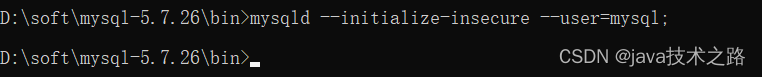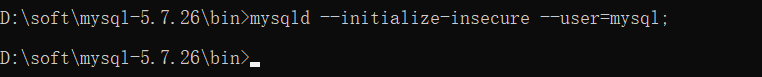 6、 再输入 mysqld --initialize-insecure --user=mysql; 初始化数据文件