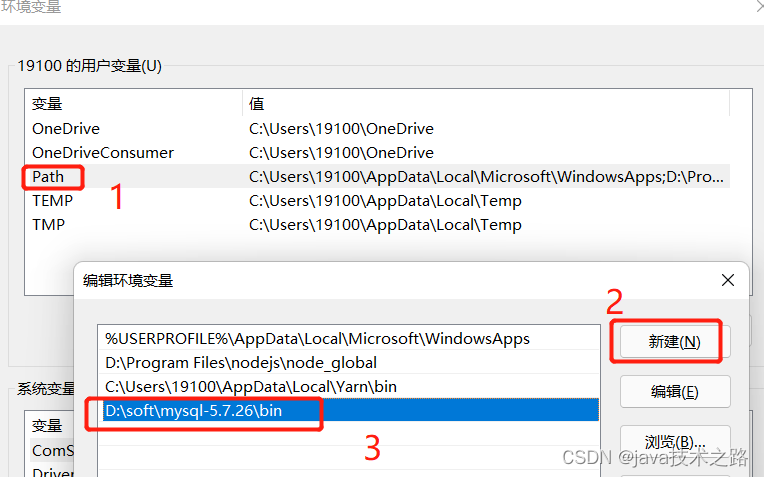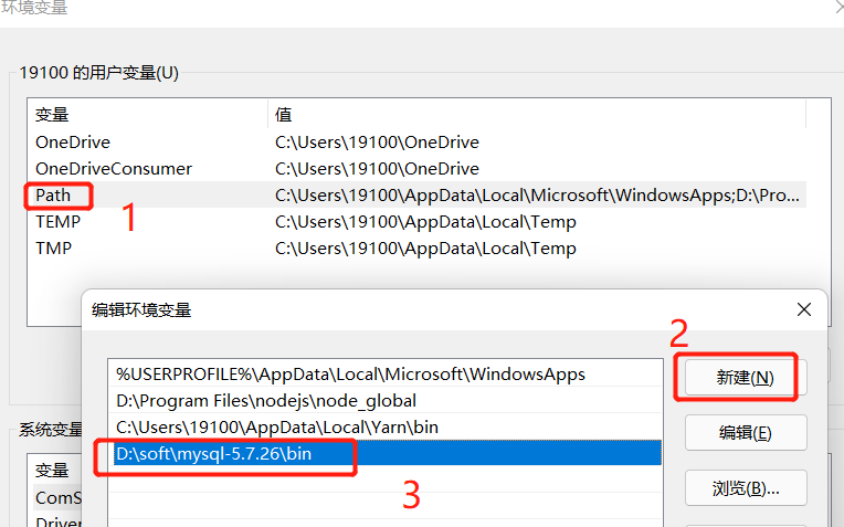 新建环境变量路径:D:\soft\mysql-5.7.26\bin
