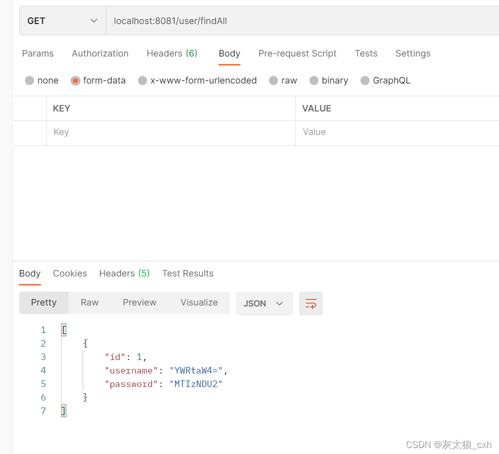 发起查询所有请求localhost:8081/user/findAll,由于该方法没有添加解密注解,所以数据还是加密的。