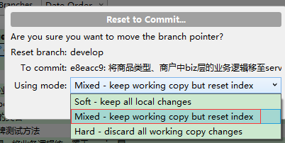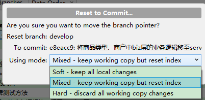 将本地uncommit changes 分支合并到远程服务器的分支,选择第二项,保持本地的修改。